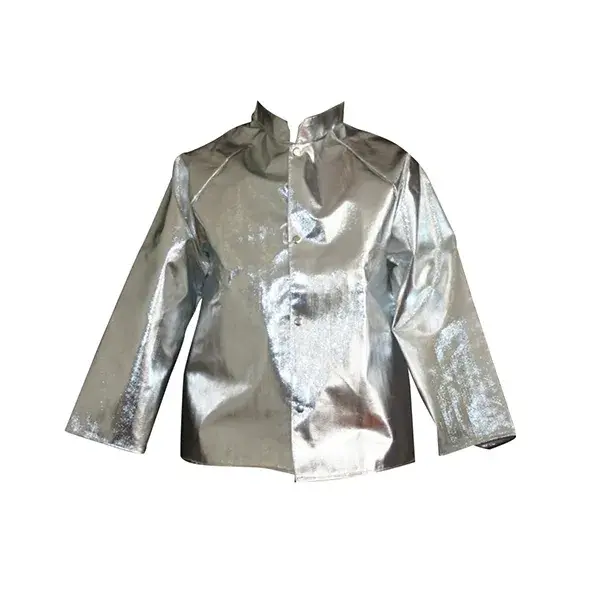 La Casaca de RAYÓN ALUMINIZADO para actividades con exposición a altas temperaturas, fabricada de tela de rayón aluminizado. El rayón actúa como aislante térmico y la lámina de aluminio cumple la función de reflejar el calor radiante.